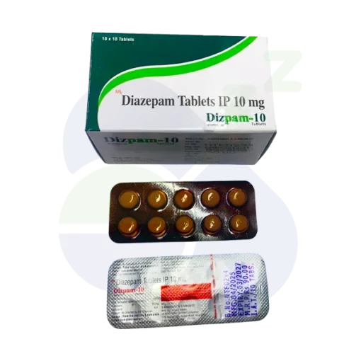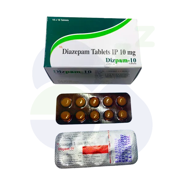 Diazepam Tablets IP 10mg, marketed under the brand name Dizpam-10, are a prescription medication used to treat anxiety, muscle spasms, and seizures. These tablets contain 10mg of Diazepam, a benzodiazepine that enhances the activity of certain neurotransmitters in the brain.