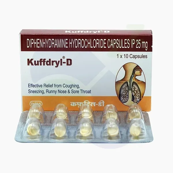 - Treat Allergic Reactions: Kuffdryl-D Softgel Capsule is employed to treat certain types of allergic reactions, including those to blood or plasma transfusions or anaphylaxis.
