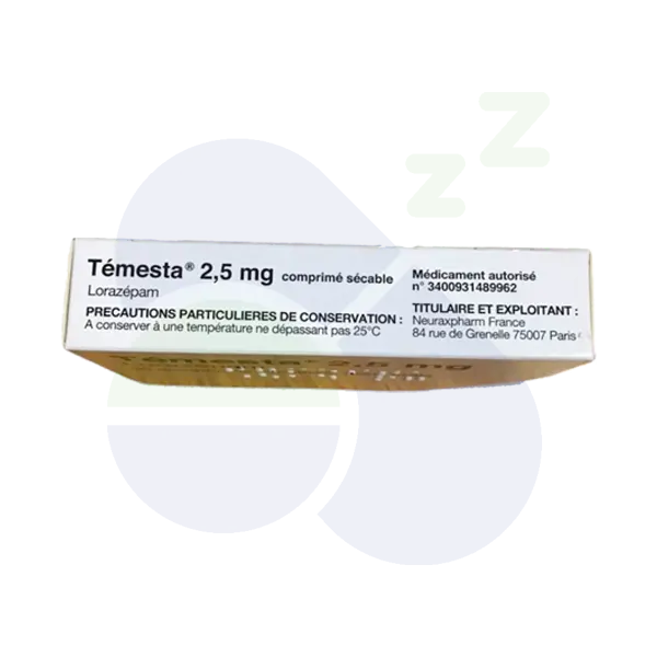 Temesta (Lorazepam) 2.5mg is a prescription benzodiazepine medication used for the short-term management of severe anxiety disorders, anxiety-related insomnia, and as a pre-anesthetic sedative. It works by enhancing the effects of GABA in the brain to produce a calming effect.